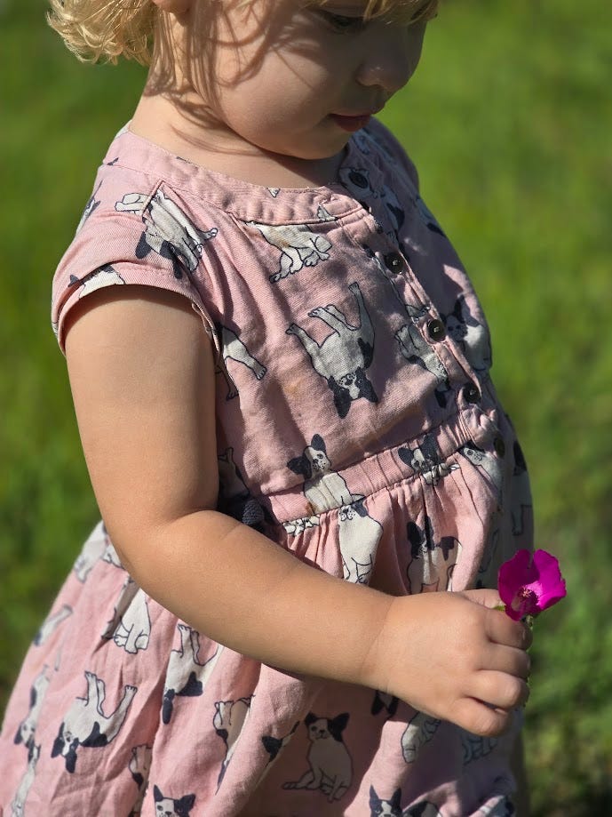 The first time I went clothes shopping for my unborn daughter I felt embarrassed by my giddiness at the sight of all the pretty clothes, the tiny socks, the pink lace, my delight of simple beauty. I bought her a fuzzy onesie that was yellow and blue striped and had honeybees on the feet, and on the way home I kept staring at it peeking out of the sack on the passenger seat beside me. I felt vulnerable in the presence of that little onesie, like it was betraying my pedestrian tastes. But was I going to dress my daughter in a reflection of my own brokenness? I refused to. I saw her looking at me looking at her looking at the world around us, and the things I used to mock as being simple, or plain, became beveled with gorgeous delight.