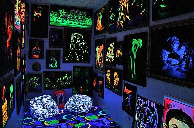 I love the indiscriminate taste of children. They haven’t yet learned snobbery when it comes to aesthetics, and they’re attracted to beauty without filters. The bright melange of toy aisles are filled with wild color, sparkles, shimmer, silver, smooth plastic, rainbows, fuzzy textures. I loved many things adults call ugly - those bottles of rainbow sand you could find at carnivals and craft fairs, velvet neon paintings, those metallic holographic pictures of wolves and eagles you could find at truck stops and gift shops. I have clear memories of being in a bathtub, amazed at the way the water subverted the shape of the toys. The dimensions of space seemed to take on a new depth. I had yet to learn how to contextualize and prioritize the things I saw in an adult way, so everything had a bright significance. Every moment could extend on forever, and time became a well pointing downwards beneath me. I never wanted to get out of the bathtub. I didn’t fully understand why I had to let any bright and beautiful moment end.